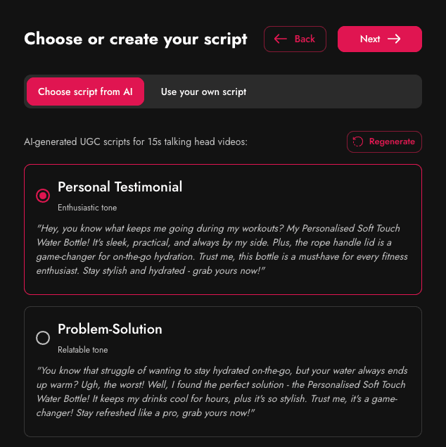 - Simply enter your product URL and our AI analyzes your page to create compelling, conversion-optimized scripts. Choose from multiple tones or write your own custom script.